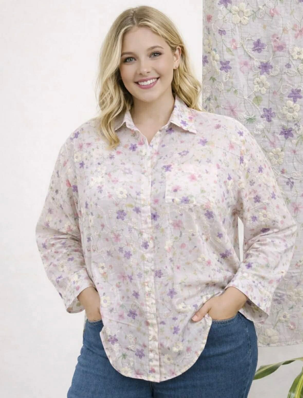 Chemise imprimée et brodée.